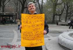 او بر روی کاغذش می نویسد: "من به دنبال خانمی خوب و پولدار هستم تا همسرم شود. تابه حال ازدواج نکرده ام و بچه ای ندارم لطفا اگر مرا دوست داریم با من تماس بگیرید. "